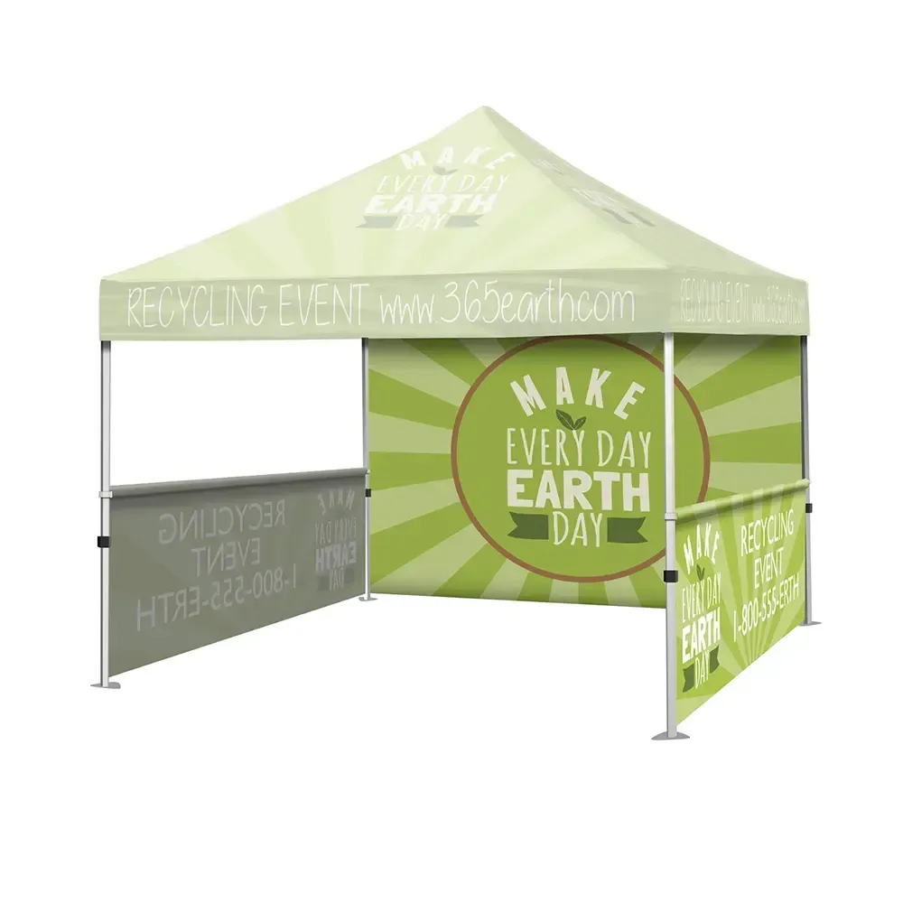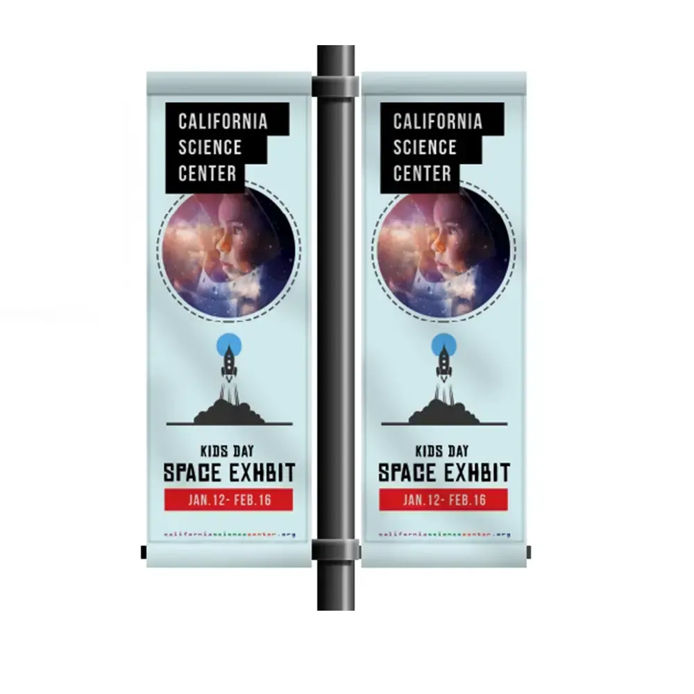 Double sided banner features two banners sewn together
